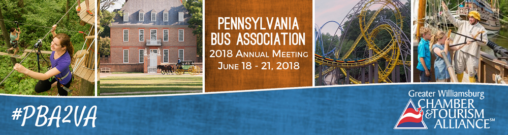 Greater Williamsburg is excited to host the 2018 Pennsylvania Bus Association's Annual Meeting! We are proud to highlight our wonderful host venue; DoubleTree by Hilton Williamsburg and we look forward to showing you the best that our destination has to offer. I want to thank PBA partners for bringing the Annual Meeting back to our area since PBA's last visit in 2002. Although Williamsburg still showcases history, food and fun, there have been many amazing additions to the destination over the years since the last PBA we hosted, and we cannot wait to share these fantastic new opportunities with you for your clients.